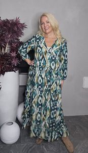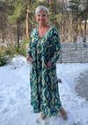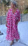 Alexandra Flow Dress er en romslig og løs kjole i bohemsk stil, laget i 100 % viskose. Stoffet har et mykt, litt tyngre fall som legger seg rolig på kroppen og gir kjolen et avslappet og naturlig uttrykk.