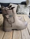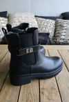Elegant og tidløs ankelboot med en moderne chunky såle og dekorrem med metallspenne.