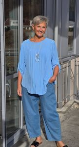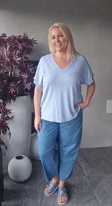 Lett og behagelig bukse med myk denim-look og et fint, naturlig fall. Stoffet er pustende og føles silkemykt mot huden.