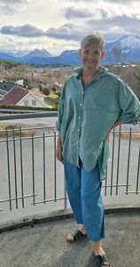 Synnøve bruker bukser i xl, og ca. 44 og har god plass i denne.