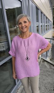 Lett og luftig bluse med myk struktur og god vidde. Den enkle, runde halsen og den avslappede fasongen gjør den fin både til hverdag og på ferie.