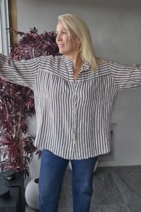 MELINA l/s shirt blouse BC - navy stripe - kun s/m, 1 stk l/xl