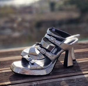 Party Sandal med platå og hel, vegan nappa metallic dyreprint, innerfor og innersåle skinn, yttersåle syntetisk, hel 9 c