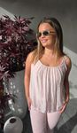 Lekker topp med stropper og blomsterdetalj på stroppene.
