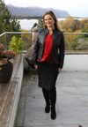 Anea viser str. 38 i samme type jakke, de er litt små i størrelsen . Gå en størrelse opp fra din vanlige størrelse, det er nok lurt. Synnøve valgte str. 44 i denne, den sitter finest over skuldrene også, men er trangere enn str. 46. Vurderte str. 46, men da er den ikke så nett på kroppen. Så velg det du ønsker.